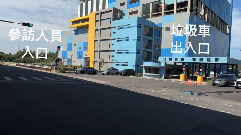 十三、 活動注意事項:本活動由建築師自行前往參訪地點,建議大家共乘共同前往,現場仍有部分施工進行,參訪過程請聽從導覽並注意自身安全,下圖為車輛出入口。